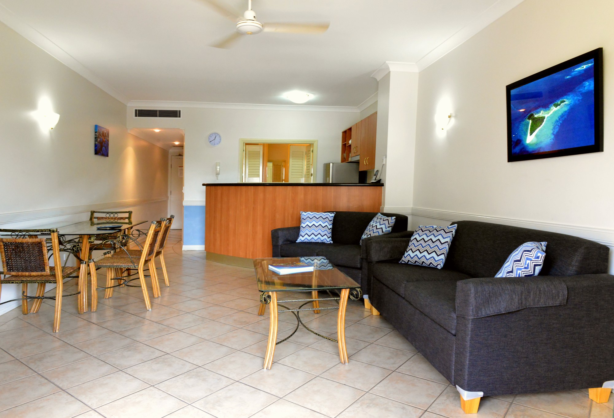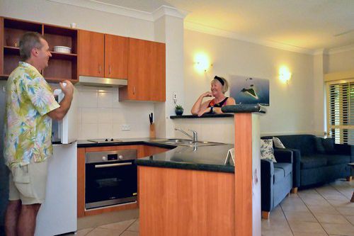 Waterfront Terraces is a boutique Cairns Esplanade Holiday Apartments complex that provide both 1 and 2 bedroom apartments for short or long term stays. Waterfront Terraces provides convenient Accommodation near Cairns Base Hospital which is ideal for out of town visitors who are supporting family and friends for hospital stays. Our apartments are completely Self Contained Accommodation Cairns with kitchens and separate bedrooms as well as private bathrooms. Visitors who stay with us at our Cairns Waterfront Affordable Accommodation get some of the best views of the Cairns Esplanade with private balconies ideal for taking in the views out to Green Island and the Great Barrier Reef. Because we are positioned on the Esplanade we provide guests with great Cairns Oceanview Accommodation with great views from almost every room in the apartments.